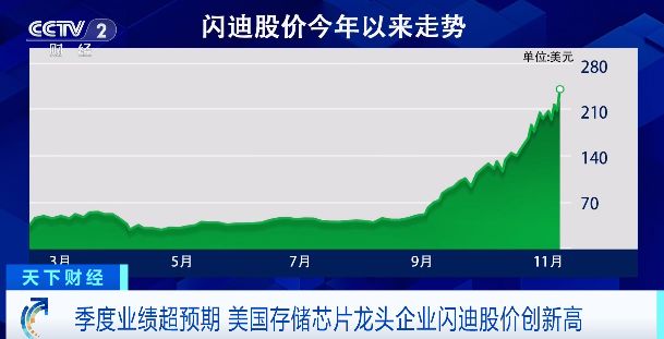 来源:央视财经 当地时间7日,美国存储龙头企业Sandisk股价上涨引人关注。近期,Sandisk还将其11月NAND闪存芯片的合同价上调了50%。业内人士指出,人工智能驱动的需求增长正在挤压传统晶圆厂的制造能力。近日,总部位于加州的领先存储芯片公司Sandisk公布了超出市场预期的季度业绩。受AI数据中心强劲需求推动,Sandisk上调业绩指引,股价创历史新高。当地时间上周五美国股市交易中,Sandisk股价上涨近15.3%,报收于每股239.48美元。今年以来,该股累计上涨超过565%。图为今年Sandisk股价走势。在Sandisk“业绩超出预期并上调指引”后,至少11位华尔街分析师上调了他们的评级。股票价格目标。此前接受CNBC采访时,一些分析师也表示对Sandisk的未来持乐观态度。许多华尔街分析师上调了Sandisk 股票的目标价。据 Digitimes Asia 报道,Sandisk 11 月份将 NAND 闪存芯片合同价格大幅提高了 50%。此举突显了当前芯片内存市场在人工智能数据中心的强劲需求和全球晶圆制造产能限制的推动下迅速趋紧。据悉,Sandisk涨价对连锁存储行业造成震动,导致创见、宜鼎、宇瞻等存储模组厂商暂停出货并重新评估出货量。其中,Transcend从11月7日起暂停报价和发货,认为“市场环境将持续改善”。换句话说,这意味着价格可能会继续上涨。值得注意的是,AI驱动的需求增长周期也在不断变化。挤压传统晶圆厂的产能。业内人士指出,晶圆厂的生产线不断向高端GPU和内存倾斜,导致消费级SSD,即用于个人电脑和游戏机的固态硬盘等传统品类供应持续紧张。 Sandisk 11月份将其NAND闪存芯片的合同价提高了50%。业内人士指出,消费电子中使用的动态随机存储器D-Ram芯片、SSD所需的NAND闪存芯片以及机械硬盘的全球供应已几乎被AI数据中心的需求挤压。存储模组大厂威刚董事长在接受Digitime Asia采访时表示,在他三十年的行业经验中,从未见过上述所有关键零部件同时短缺的情况。 Sandisk 预测,到 2026 年,数据中心将超越移动设备首次成为NAND闪存最大的需求来源,这将给NAND闪存市场带来重大变化。分析师预测,在pSandisk提高NAND闪存价格、AI持续消耗行业制造产能的同时,消费电子产品未来可能面临涨价。