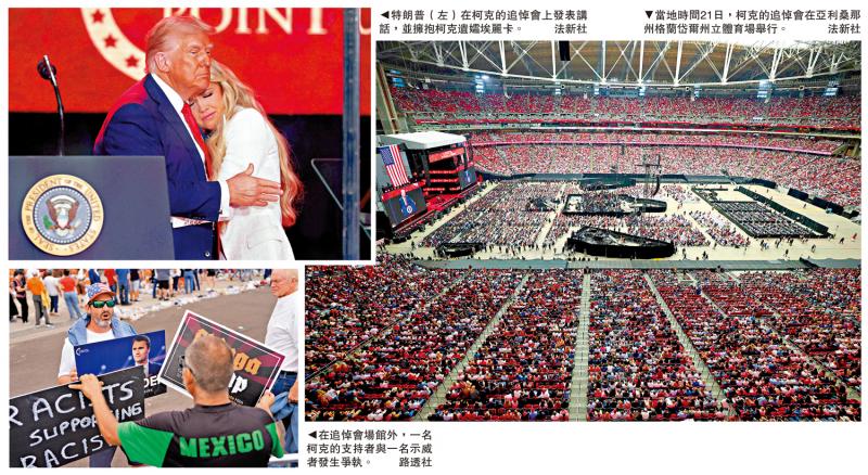 左上:特朗普(左)讲述了柯克的纪念,并拥抱了柯克的遗ow埃里卡。 \ afp;左下图:在纪念堂外,柯克的支持者在抗议者上有争议。 \ reuters;正确的图片:柯克的记忆服务于当地时间第21届在亚利桑那州的格伦代尔州体育场举行。 \法新社在当地时间,美国总统特朗普的政治盟友查理(Charlie)和著名的保守派“互联网名人”柯克(Kirk)的追悼会在亚利桑那州举行,拥有200,000多名参与者。马斯克(Musk)是一名亿万富翁,他早些时候与特朗普(Trump)公开休息,也与特朗普(Trump)握手。在记住的服务中,特朗普重申,强烈的左派必须负责柯克的枪击事件,并强调“他讨厌他的对手”。美国媒体描述了这种Alaa Servicela就像在特朗普的政治中的一个巨大集会一样,使用它来结合保守派的力量,而特朗普的言论则进一步反映了美国社会的严重分裂。 [ta如果PAO新闻]现年31岁的柯克(Kirk)于9月10日在犹他州谷大学发表演讲时被枪杀。保守派非营利组织“ America Turning Point”在21岁的亚利桑那州Glendale State Stadium为他建立了提醒服务,持续了五个小时。成千上万的人在体育场外面排队了几个小时,有些人早点建立了营地。 Glendale State Stadium可以容纳多达73,000人,既饱满,又有保守的媒体,例如Hawsh News说,有200,000人参加了比赛。万斯副总统和一些年长官员与特朗普总统一起参加了会谈。柯克(Kirk)的记忆服务被任命为美国国土安全部的特殊活动,安全评级与总统的就职典礼和美国崎litage联赛“超级碗”的年度决赛相同。禁止将袋子放在现场,并设置安全频道。观众必须走通过金属探测器和扫描仪查看。体育场上方的屋顶保持关闭。讲台位于一杯防弹杯后面,包括美国特勤局,联邦调查局和州警察以及其他机构负责安全行动。 《华盛顿邮报》说,柯克的追悼会很高,安全性非常紧,可以与美国埋葬相提并论。寡妇说他原谅了杀戮的眼泪。记住服务就像“让美国再次伟大”(MAGA)或政治集会的会议。许多人戴着肿胀,肿胀的服装或带有美国国旗的红色,白色和蓝色衣服的帽子。基督教乐队演奏音乐,观众唱歌和祈祷。柯克(Kirk)的寡妇埃里卡(Erica)被视为“美国转折点”的首席执行官,他多次泪流满面。他在讲话中说,即使他的妻子早就去世了,“他不后悔,因为他将100%的努力放在工作中他每天都提到杀手鲁滨逊 - 他杀死了柯克,援引圣经,说他愿意原谅他,“那个年轻人,我原谅了他。仇恨的答案不是仇恨。特朗普的盟友认为柯克的死是捍卫保守的行动,他们呼吁柯克的追随者继续跟随。白人艾德斯·艾德斯·夏·米勒(Whitey Aidei Chang Miller)说道,凯尔克(Kirke)的死亡终于挑衅了他的政治,批评伊斯特(Dright of Dighant)的言论,伊斯特·米尔勒(Dright of Dightne)又挑战了罪名。离开营地。“我讨厌我的对手,不想让他们友善。”“每个人都可能试图说服我,但是讨厌他的对手的人是我的自然反应”,威胁要严厉惩罚杀手-Tao。马斯克·特朗普(Musk Trump)与马斯克(Musk)握手。特朗普通过杀死柯克(Kirk.Young)保守派选民来召集政治权力,特朗普最近在关税方面采取的政策,处理非法移民和公共安全,导致了外界的强烈不愉快。他与爱泼斯坦的密切关系越来越多,最近也震惊了玛格营的信心。英国广播公司(BBC)表示,这项充满火药的召回服务反映了柯克(Kirk)的死如何被美国政治生态撕裂。右翼营地指出了直接向左派的政治暴力领导,特朗普政府借此机会压制了他如此称呼“激进的左”。专家坚持认为,柯克的死可以激发共和党的支持者,以防止中期选举的不良结果。 (综合报告)