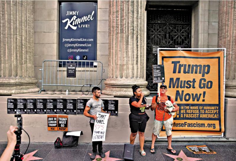 照片:美国人在吉米·金梅尔(Jimmy Kimmel)秀录制的娱乐中心外展示,反对特朗普政府阻止阳台的压力。迪斯尼拥有的电视网络\ Reuters ABC在17日宣布,它暂停了著名艺术家吉米·金梅尔(Jimmy Kimmel)从现在开始的深夜节目“吉米·金梅尔(Jimmy Kimmel)的节目”。据报道,吉米·金梅尔(Jimmy Kimmel)在演出中评论了保守的互联网柯克(Kirk)的受欢迎程度,这使特朗普阵营中的人民激起了不愉快的态度。神圣生活编剧工会和演员联盟谴责了中止该节目的决定,称其侵犯了宪法的言论自由权。美国媒体说,在特朗普辞职后,他继续压制媒体,柯克的死成为保守派进一步抑制卡波奇演讲的工具。 [ta if pao新闻]在15个本地时间的前夕,吉米·金梅尔(Jimmy Kimmel)评论了杀死柯克(Kirk)的计划。 “上周末,LO我们社会的限制达到了新的低点。杂志社区拼命地描述了杀死柯克(Kirk)的孩子,除了他们之外,并尽一切可能从中获得政治利益。”他还说,特朗普对柯克(Kirk)的死的反应不像一个成年人哀悼他的朋友,而是一个4岁的人 - 悲伤的死金鱼。撤销电视台许可证。节目“是可预测的未来不完整的”。“ ABC随后宣布了节目“永远”和吉米金梅尔尚未被解雇。据熟悉此事的人们说,包括迪士尼娱乐联合主席沃尔登(Walden)在内的高级管理人员决定停止广播,而Nexstar的声明是影响迪士尼决定的因素之一。英国广播公司宣布,Nexstar目前正在寻求获得62亿美元Integration的FCC批准,其中有一个地区广播员Tegna。迪斯尼担心特朗普的报仇,首先跪下。 Rolling Stone杂志说,目前决定停止该节目的广播,ABC和迪士尼高管举行了紧急会议。许多高管认为吉米·金梅尔(Jimmy Kimmel)在节目中没有发表任何特别的陈述,但是特朗普政府“复仇的威胁即将来临”。 “吉米·金梅尔(Jimmy Kimmel)的表演”于2003年1月26日在美国广播公司(ABC)领导,批评当前的问题,嘲笑和嘲笑政客和名人。吉米·金梅尔(Jimmy Kimmel)在演出中批评并刺伤了特朗普。特朗普在17日发布了节目被暂停为“在美国的好消息,并任命了两个NBC脱口秀节目的主持人吉米·法伦和塞思·迈耶斯,要求NBC停止永远的两个“完全失败的节目”的萌芽性。迪斯尼和美国广播公司向特朗普鞠躬的消息被美国娱乐行业震惊。许多社会团体遭到了许多社会团体的谴责。停止演出的是“令人讨厌,令人尴尬”,“令人讨厌”,而民主的人是戈麦斯(FCC)的单一民主党成员。斯蒂芬·科尔伯特(Stephen Colbert)的深夜脱口秀官方主张是财务因素,公众的意见通常询问其背后的政治因素。广播悬架甚至没有理由,“即使是无花果叶也不存在”。 (综合报告)