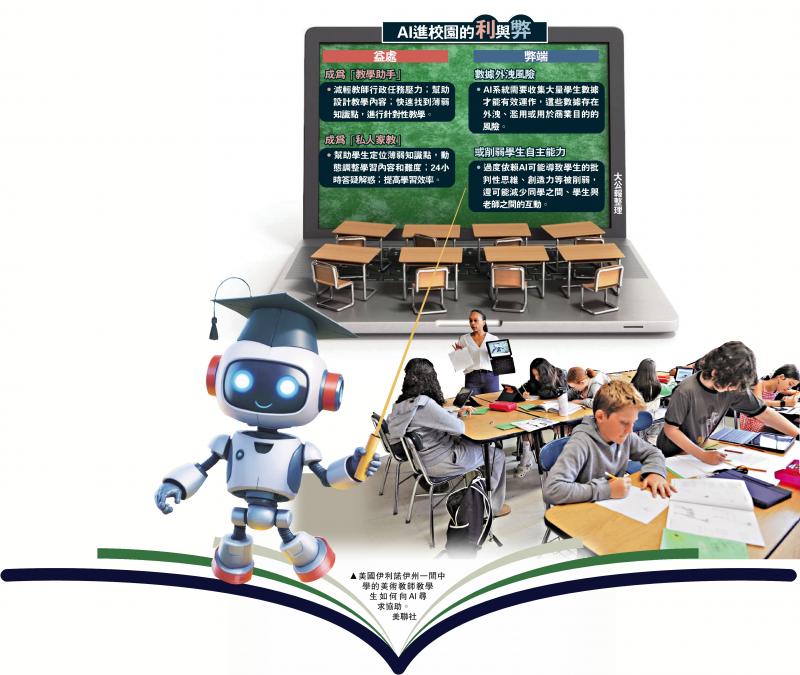 照片:美国伊利诺伊州一所中学的艺术老师教学生如何向AI寻求帮助。美联社的福利已成为“助教”•减少对教师行政活动的压力;在设计教学内容设计方面的帮助;迅速找到薄弱的知识点并执行有针对性的指令。成为“私人导师”•帮助学生找到薄弱的知识点,动态 - 改变学习和贫穷的内容;回答问题并每天24小时回答问题;提高学习效率。数据射精缺乏射精•AI系统需要大量学生数据才能有效运行,从而导致射精,滥用或商业目标的风险。或削弱了鲜明的锻炼•AI的过度希望会导致批判性思维,创造力等的弱化。